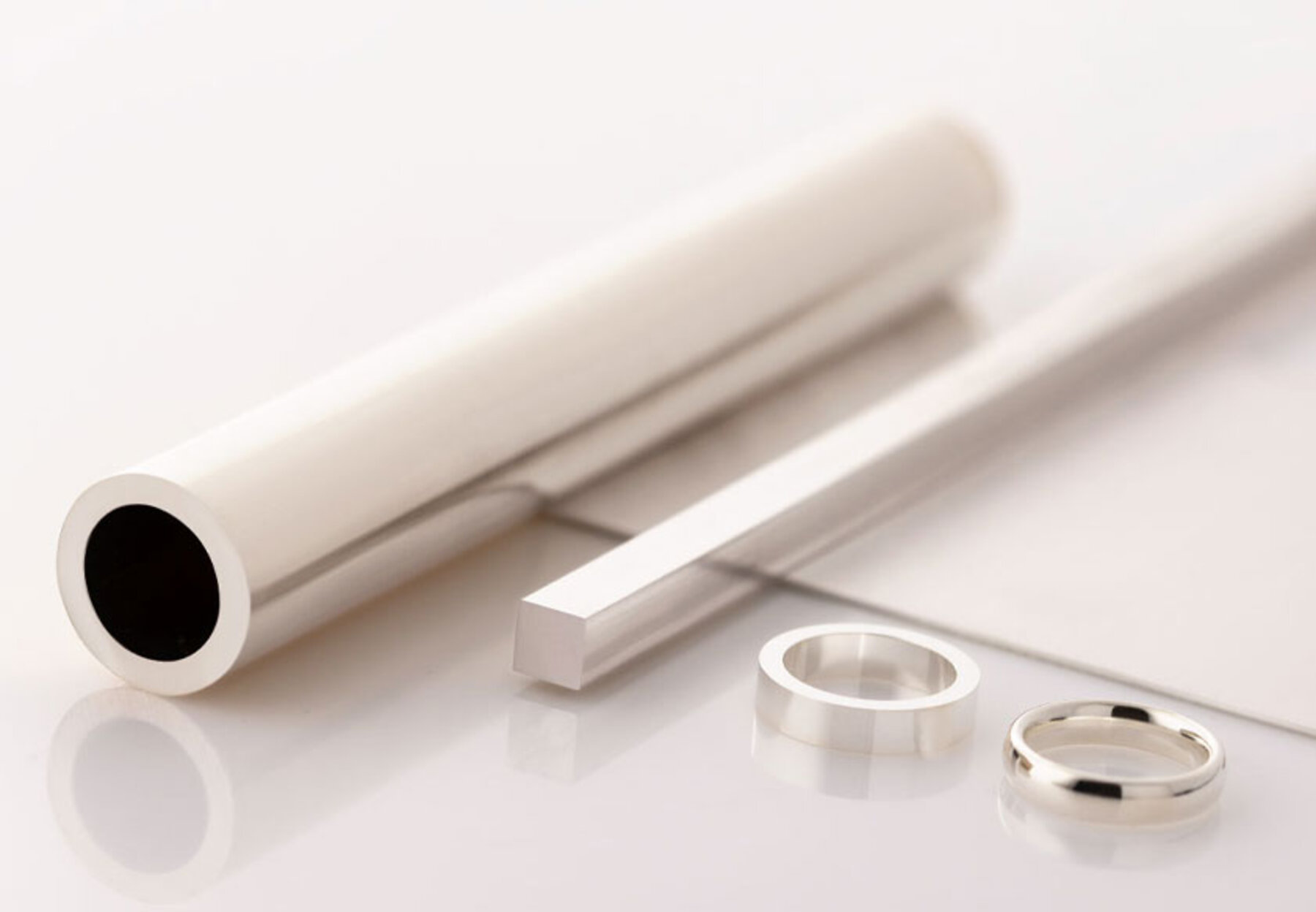 Unser Lager umfasst über 300 Artikel – darunter Ringrohlinge, Rohre, Bleche, Bänder, Lote, Walzprofile und mehr – in mehr als 25 Edelmetall-Legierungen, darunter auch Argentium.